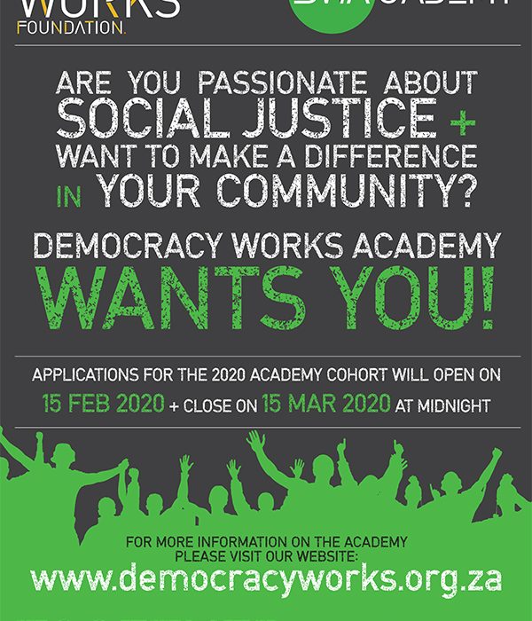 Given the inequality and social issues facing South African society, the country needs change makers committed to improving lives, Democracy Works Foundation is offering 28 young South Africans the opportunity to join the 2020 contingent of their Democracy Works Academy, which develops future civil society leaders. Applications are open between 15 February – 15 March 2020.