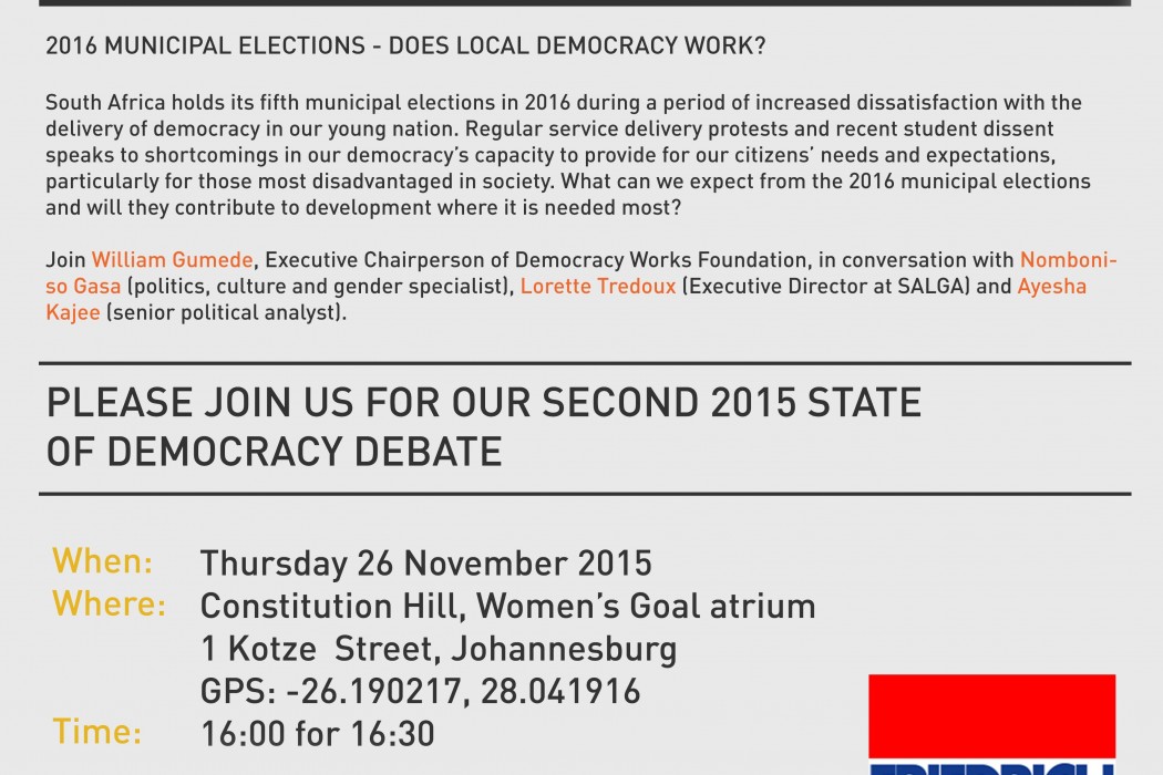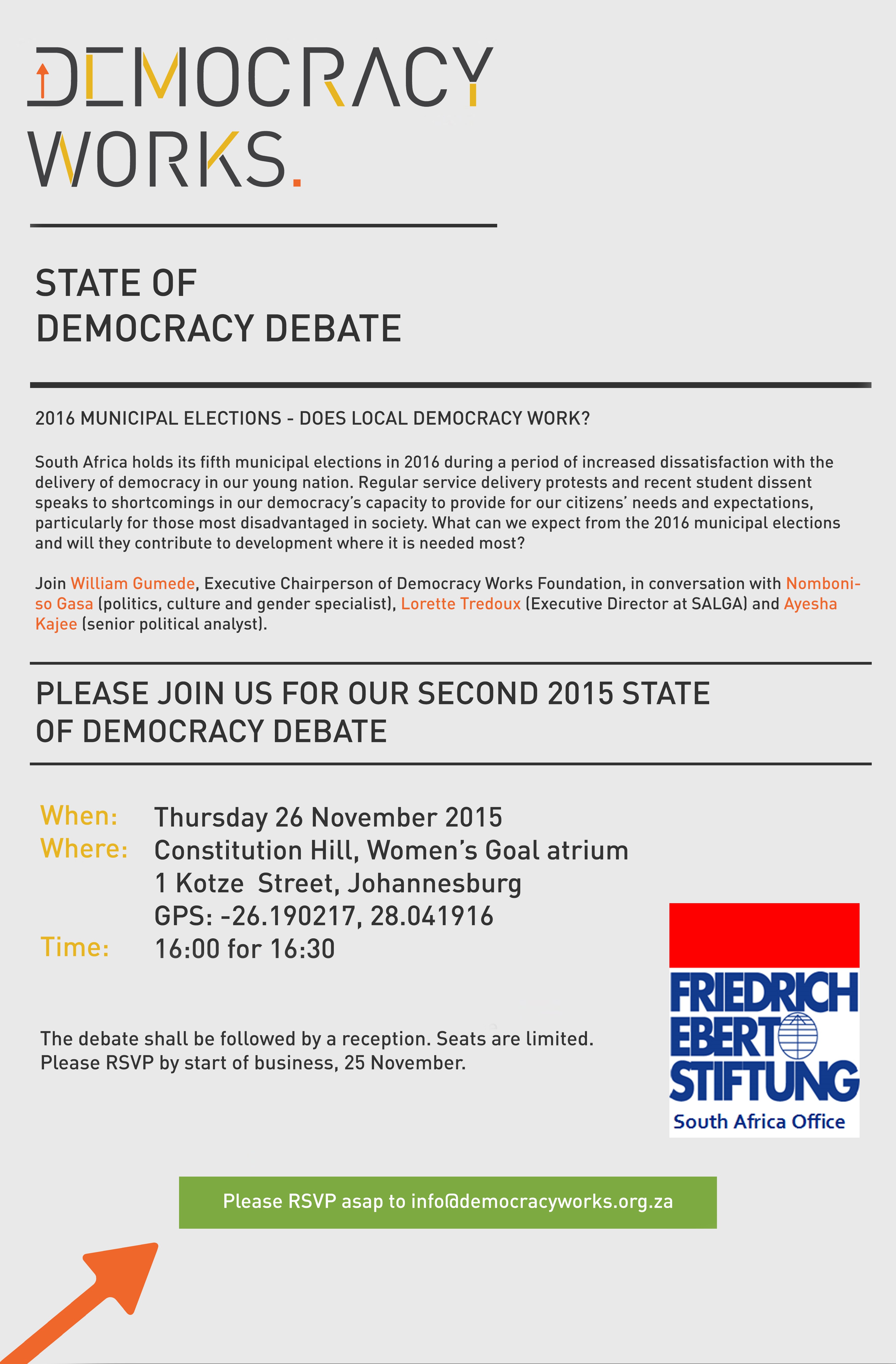 Please join us for our second 2015 State of Democracy Debate