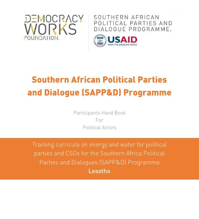 As part of the documents that constitute the curriculum on energy and water for political parties and CSOs for the Southern Africa Political Parties and Dialogues (SAPP&D) Programme, this participants handbook is accompanied by a set of Modules that has Facilitators notes to guide Trainers. The content in this Participants Handbook is mainly made up of the Key points that are listed in the set of modules. Additionally, the Participants Handbook outlines how Civil Society Actors can influence existing policies.